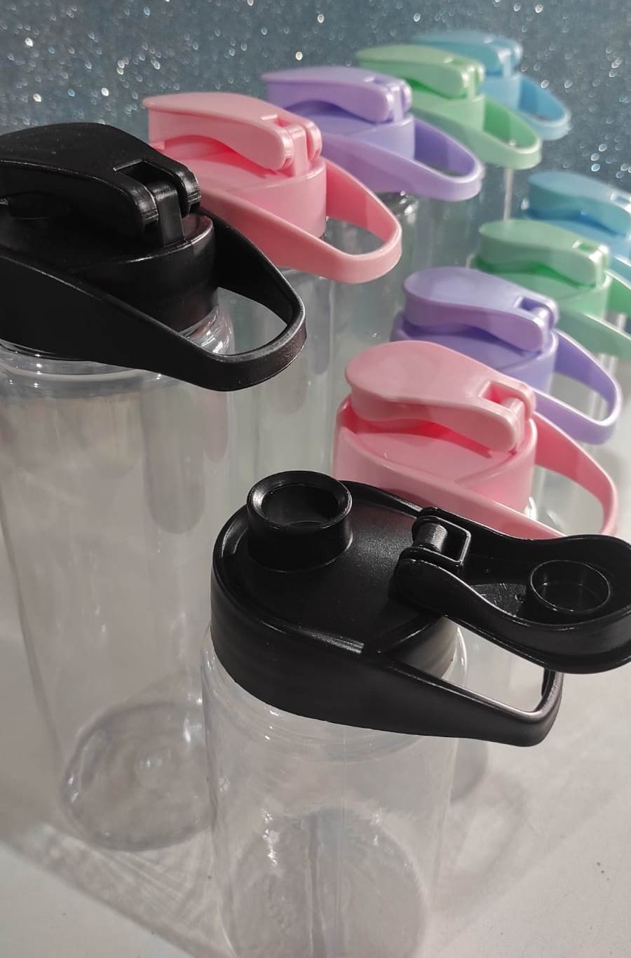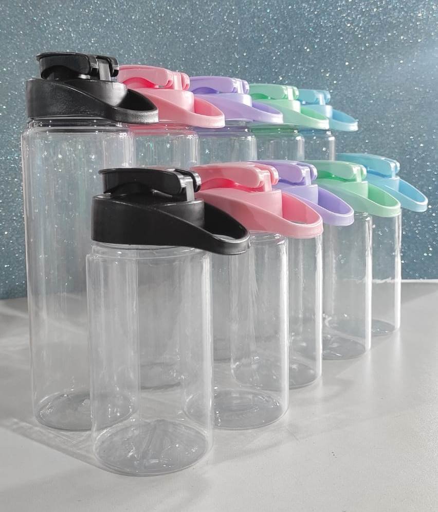 BOTELLA TRANSPARENTE TAPA COLOR A ELECCIÓN