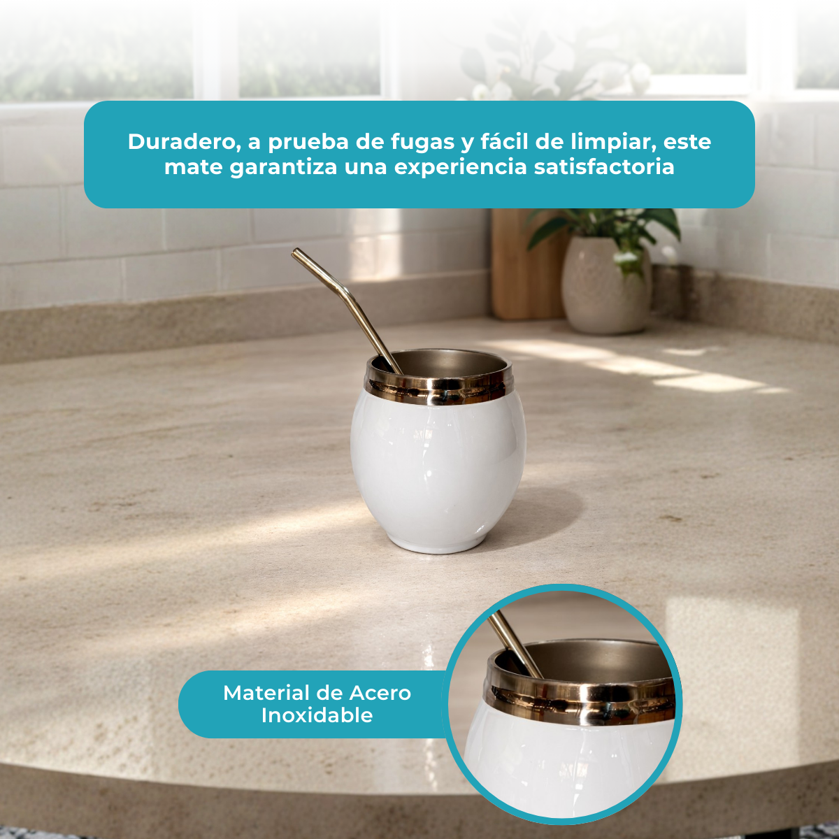 incluye bombilla de acero inoxidabl